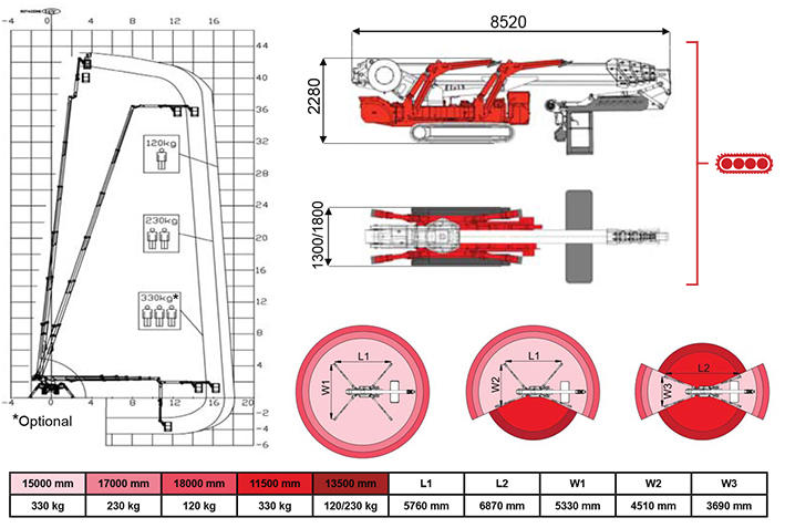 · 有120、230、330公斤载荷的工作区域,由自动“区域经理”安全系统监控。